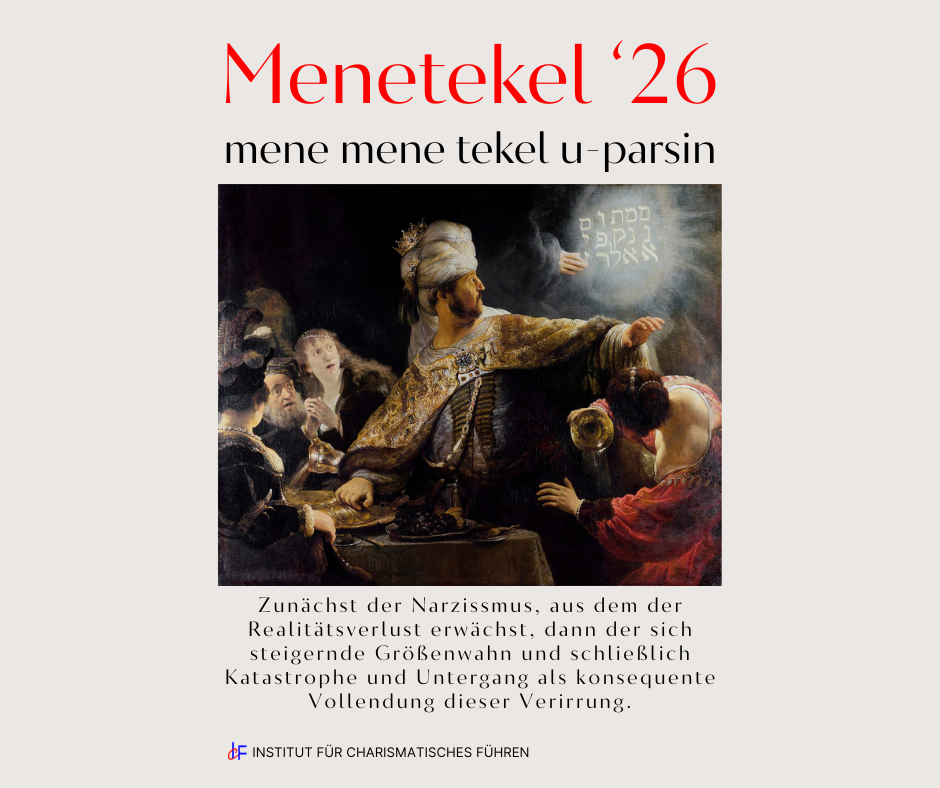 Das Menetekel unserer Zeit besteht darin, dass diese Dynamik nicht mehr als Gefahr, sondern als Ideal verklärt wird. Narzissmus heißt heute Selbstbestimmung, Realitätsverlust erscheint als kreative Freiheit, Größenwahn tarnt sich als visionärer Fortschritt, und die Vorboten des Untergangs werden als notwendige „Transformation“ gefeiert. Gerade darin liegt der Ernst der Lage: Eine Kultur, die ihren eigenen Destruktionsprozess begrifflich als Vollendung deutet, raubt sich die Möglichkeit zur Umkehr. Sie verwechselt Selbstüberwindung mit Selbststeigerung und hält die wachsende Kluft zur Wirklichkeit für einen Beweis ihrer Souveränität.